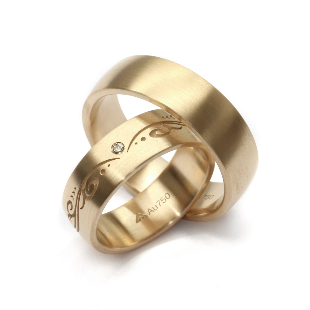 Eheringe mit filigraner Gravur und mattierter Oberfläche.