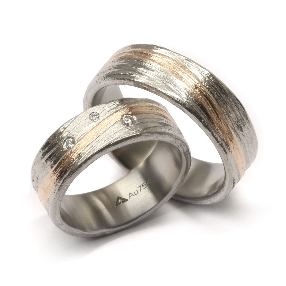 Unsere Eheringe werden individuell für Sie entworfen und in Handarbeit angefertigt. Die Breite und Dicke der Ringe sowie die Oberflächen und Materialkombinationen können Ihren Wünschen entsprechend angepasst und kreiert werden. Durch unsere verschiedenen Metallvarianten lassen sich unsere Kreationen in einem sehr breiten Preissegment anfertigen. Wir bieten Ihnen folgende Metallvarianten: Edelstahl, Titan, Silber, Gelbgold, Roségold, Rotgold, Weissgold, Platin und Tantal, sowie Fossiles Holz, Carbon, Steinfüllungen.